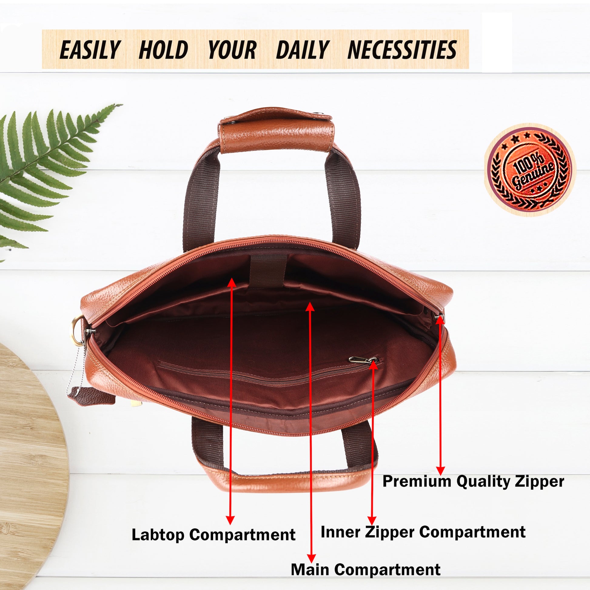 Laveri® Genuine Leather Laptop Messenger bag #2815 Tan