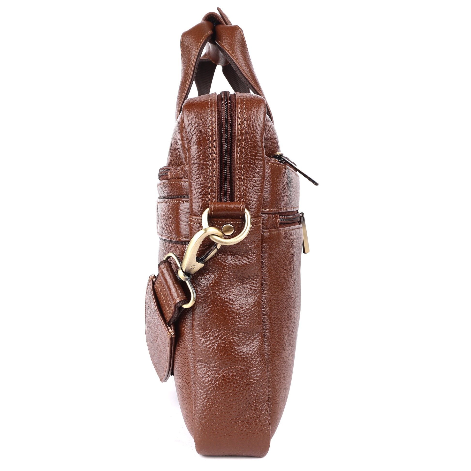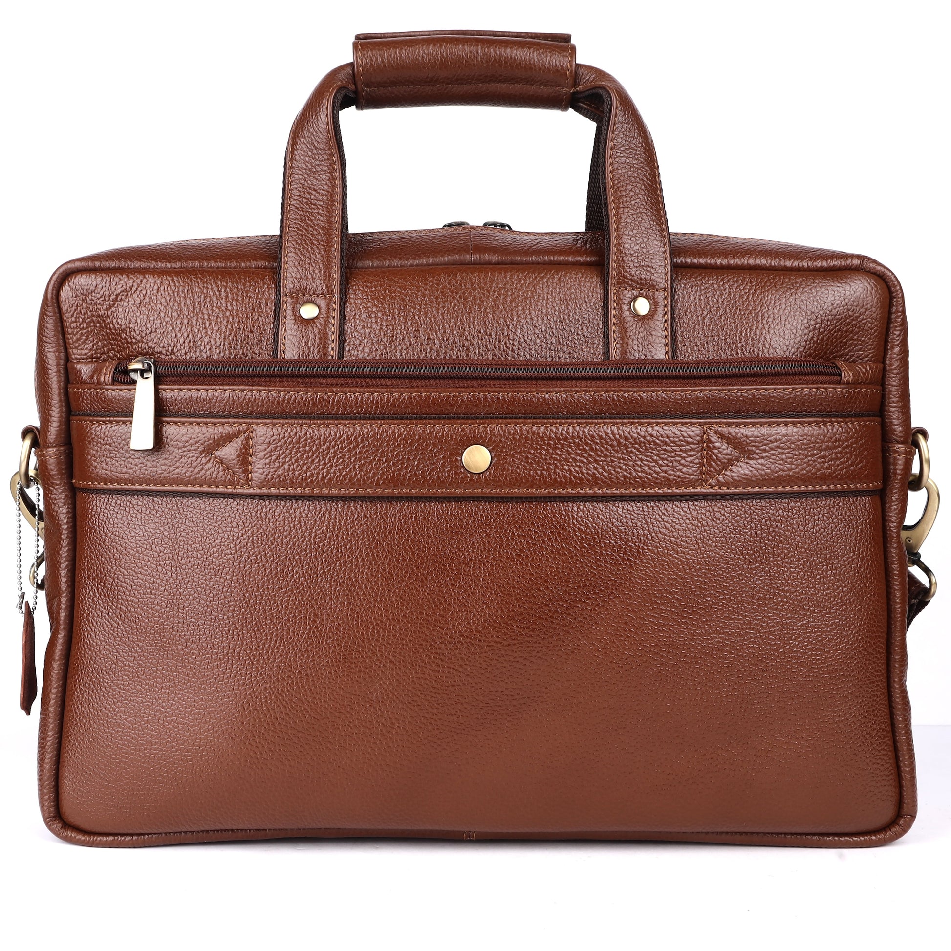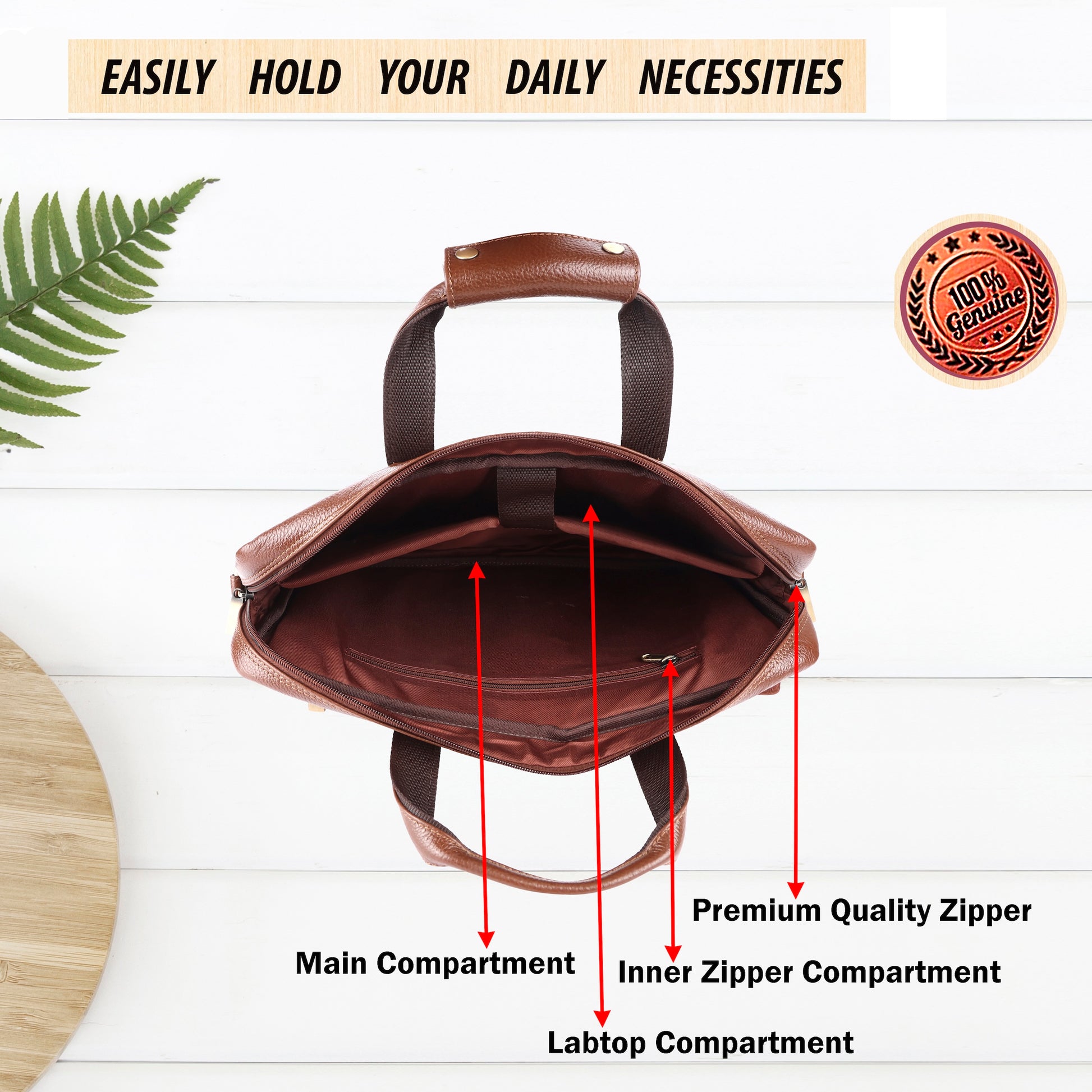 This genuine leather laptop messenger bag by Laveri is a must-have for any professional. With its sleek brown design, it exudes sophistication and style. The spacious interior and multiple compartments ensure you can carry all your essentials in an organized manner. Elevate your everyday work life with this exceptional bag!