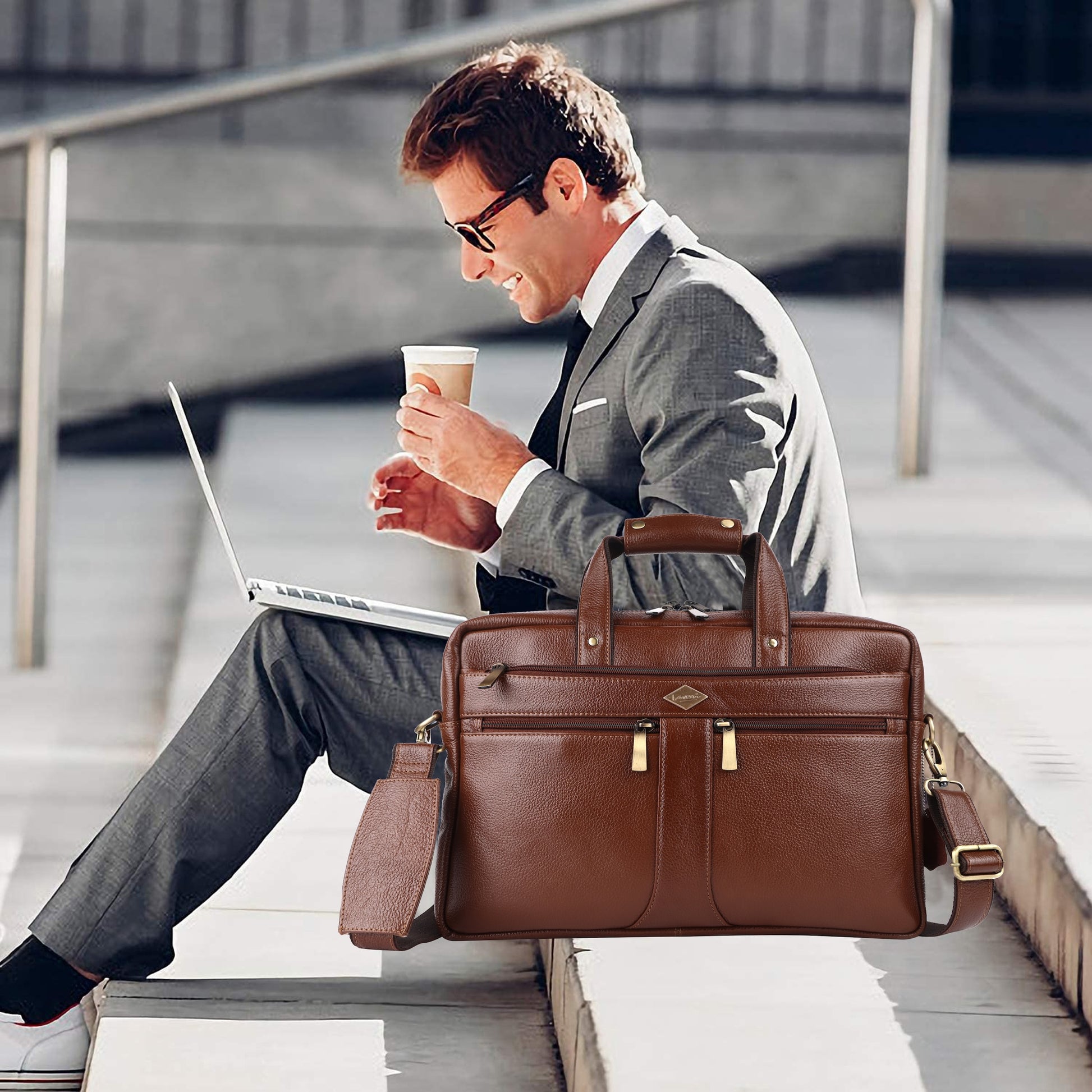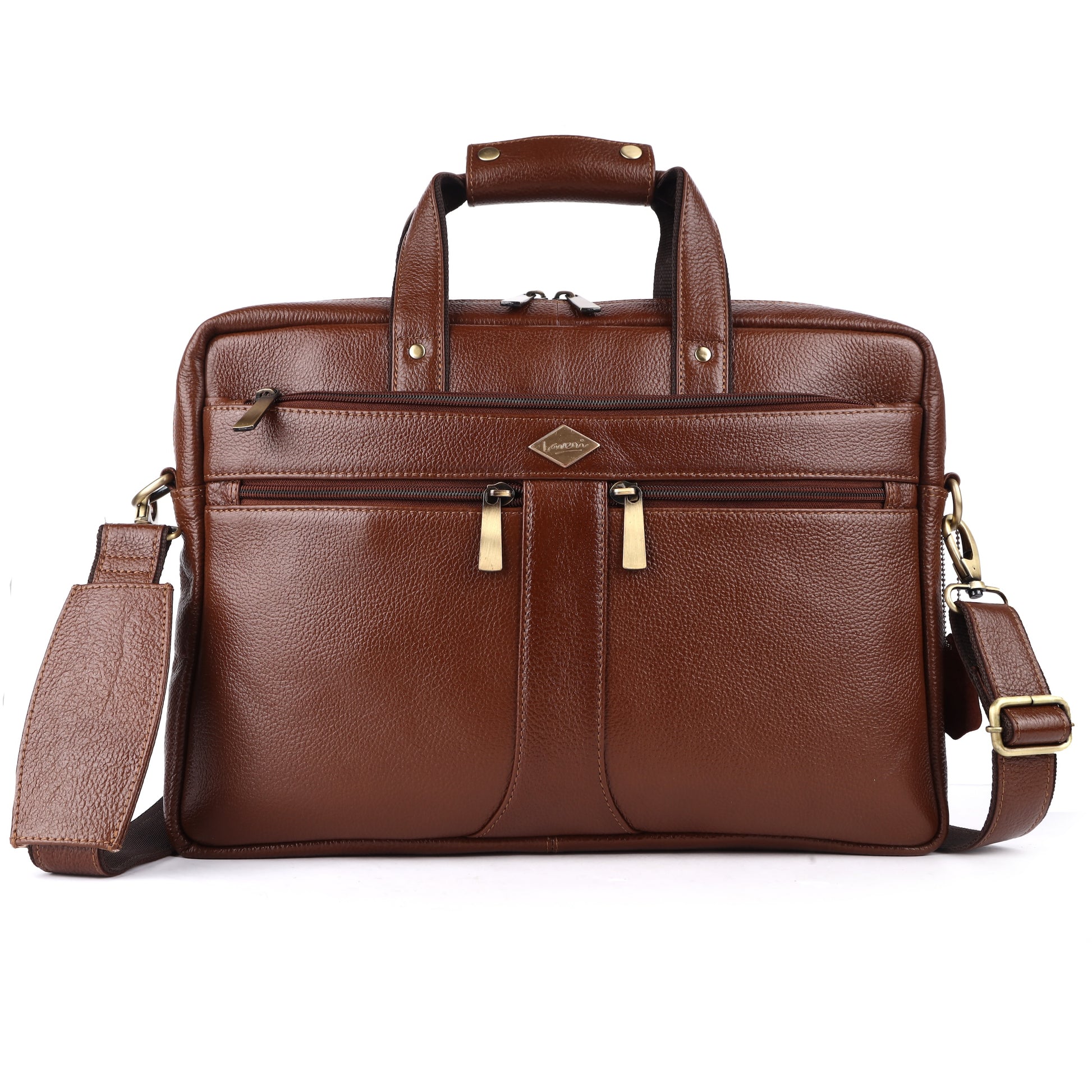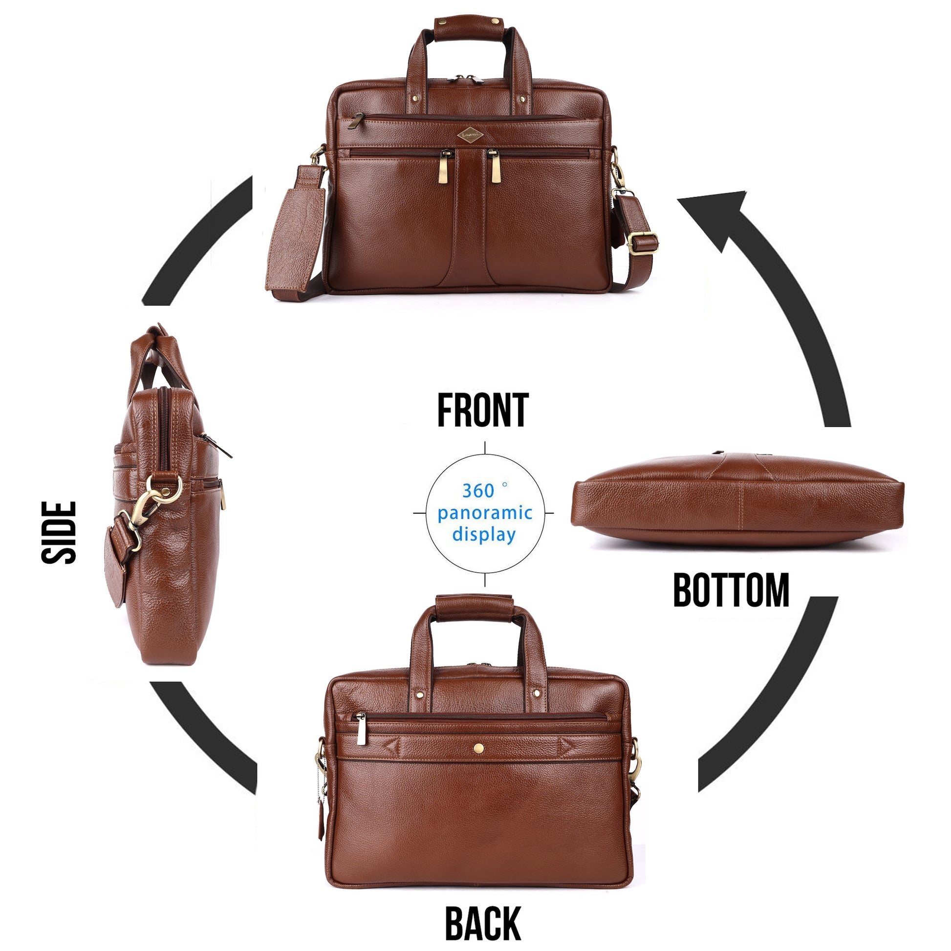 This genuine leather laptop messenger bag by Laveri is a must-have for any professional. With its sleek brown design, it exudes sophistication and style. The spacious interior and multiple compartments ensure you can carry all your essentials in an organized manner. Elevate your everyday work life with this exceptional bag!