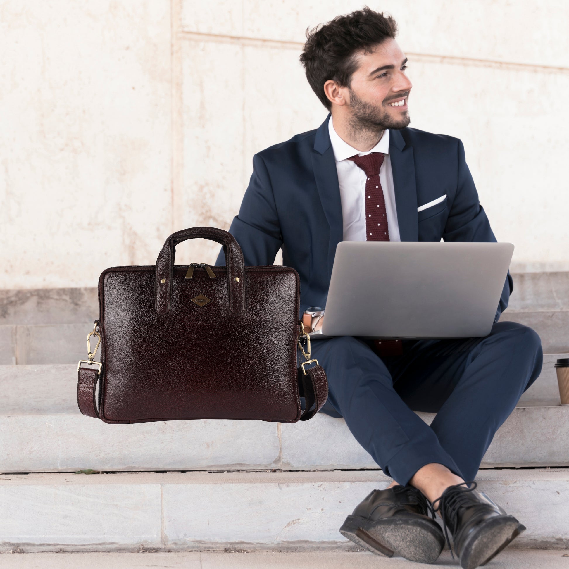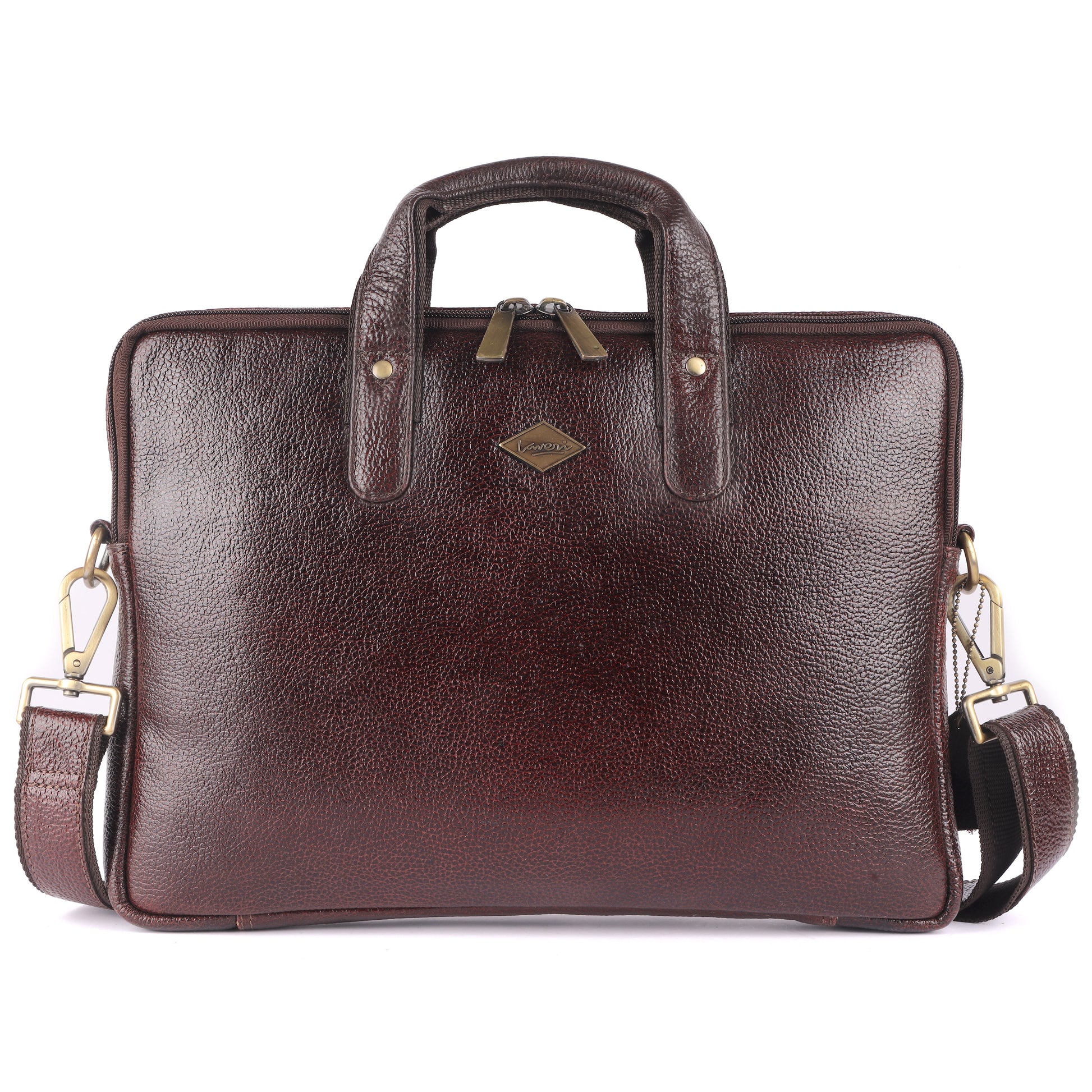 This genuine leather laptop messenger bag by Laveri is a must-have for any professional. With its sleek brown design, it exudes sophistication and style. The spacious interior and multiple compartments ensure you can carry all your essentials in an organized manner. Elevate your everyday work life with this exceptional bag!