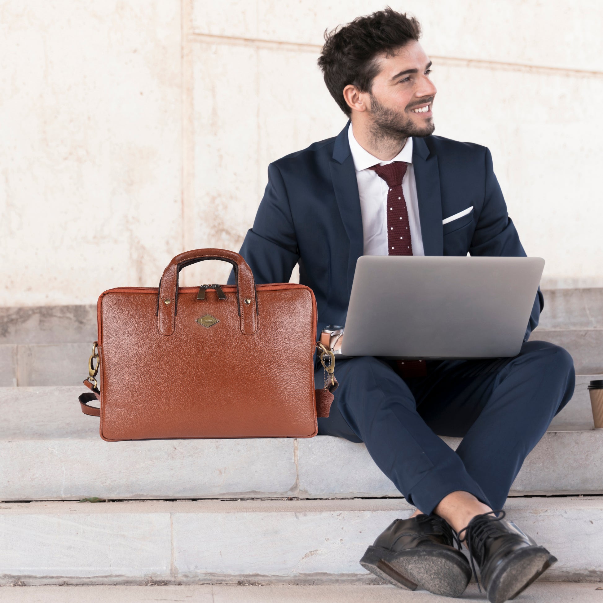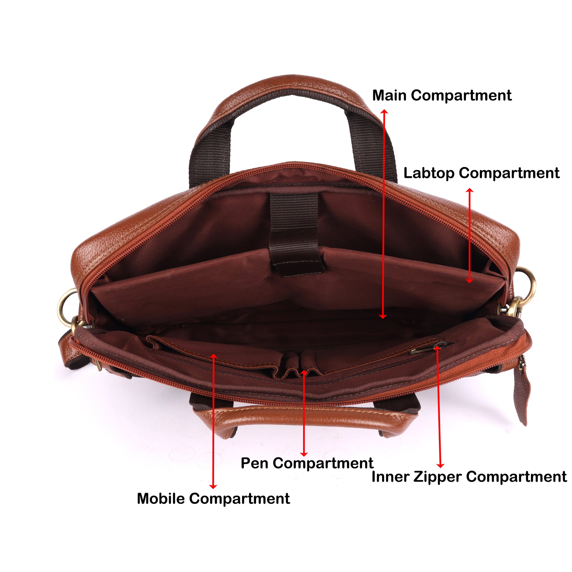 This genuine leather laptop messenger bag by Laveri is a must-have for any professional. With its sleek brown design, it exudes sophistication and style. The spacious interior and multiple compartments ensure you can carry all your essentials in an organized manner. Elevate your everyday work life with this exceptional bag!