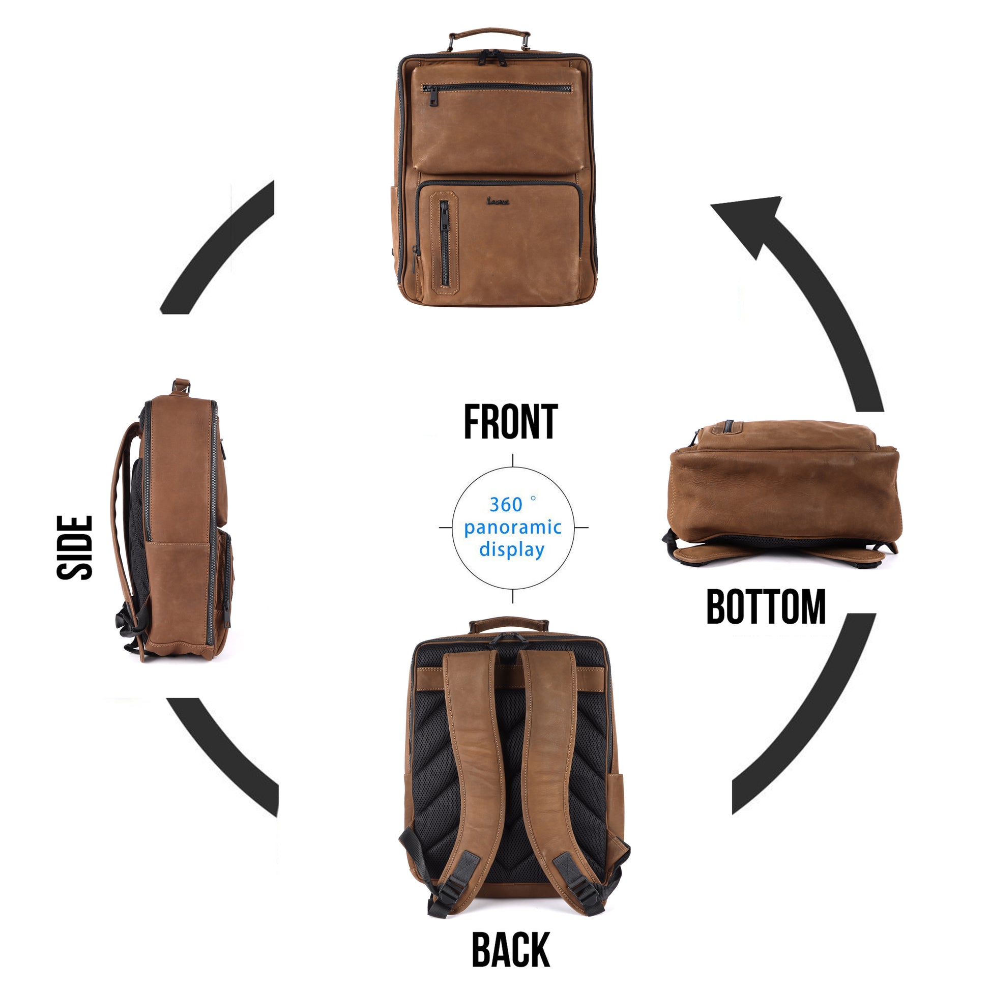 Laveri® Genuine Leather Travel Back Pack bag #2832 Brown hunter