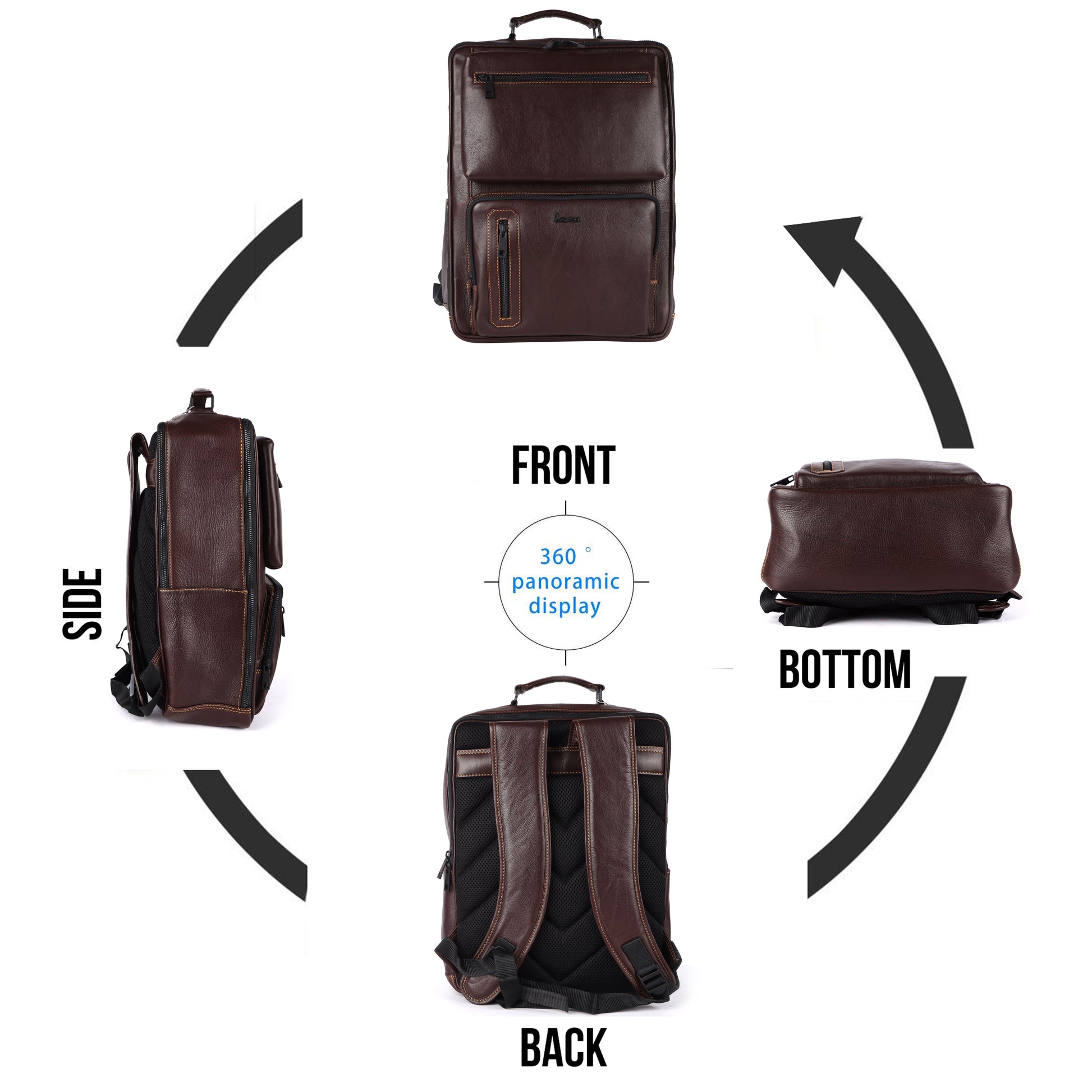 Laveri® Genuine Leather Travel Back Pack bag #2832 Dark Brown WG available only prepaid order