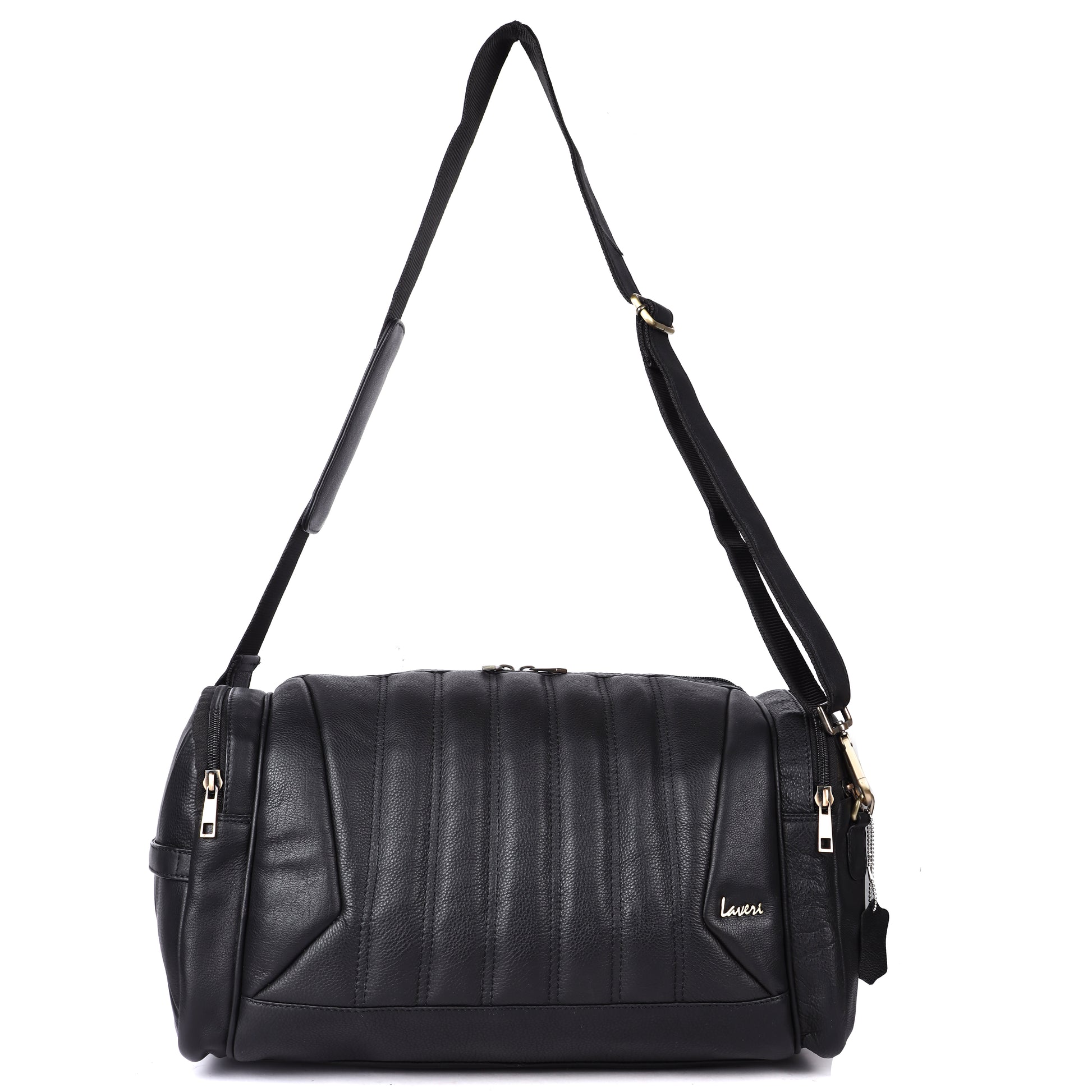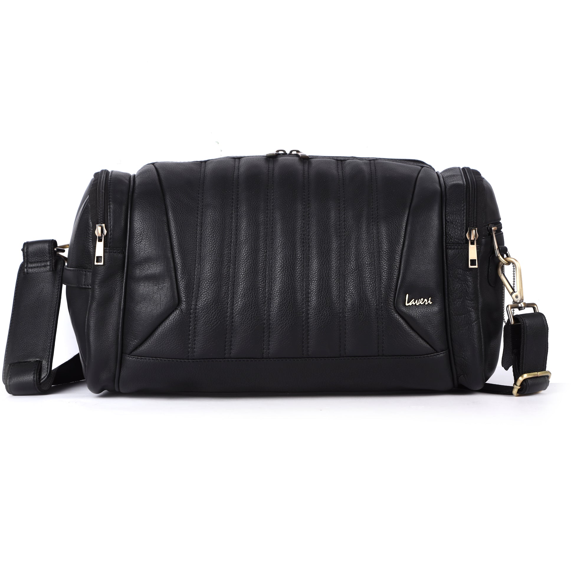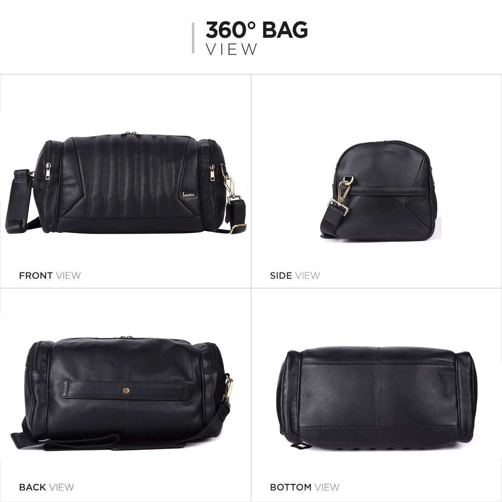 Laveri® Genuine Leather Travel Duffel Bag #2860 Black