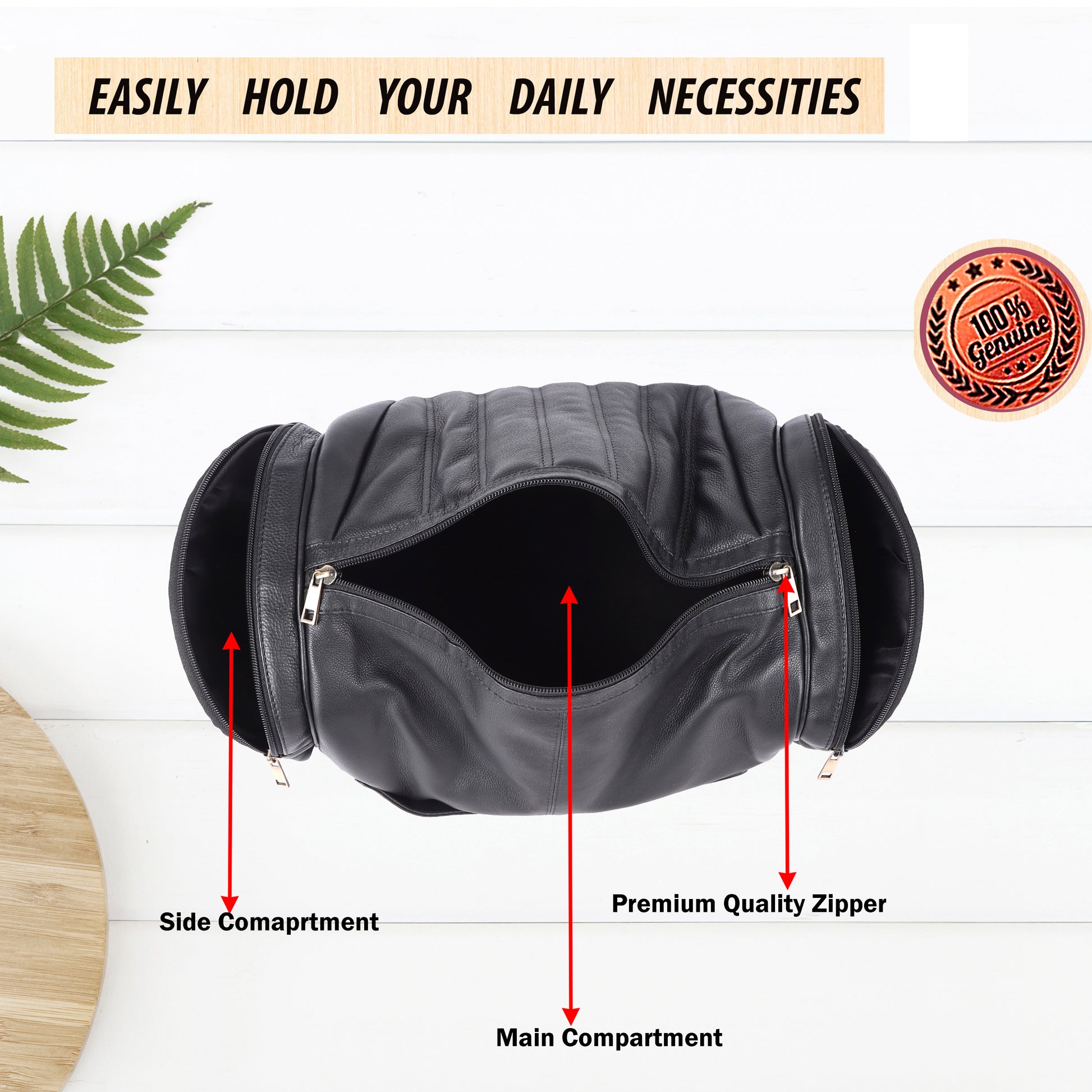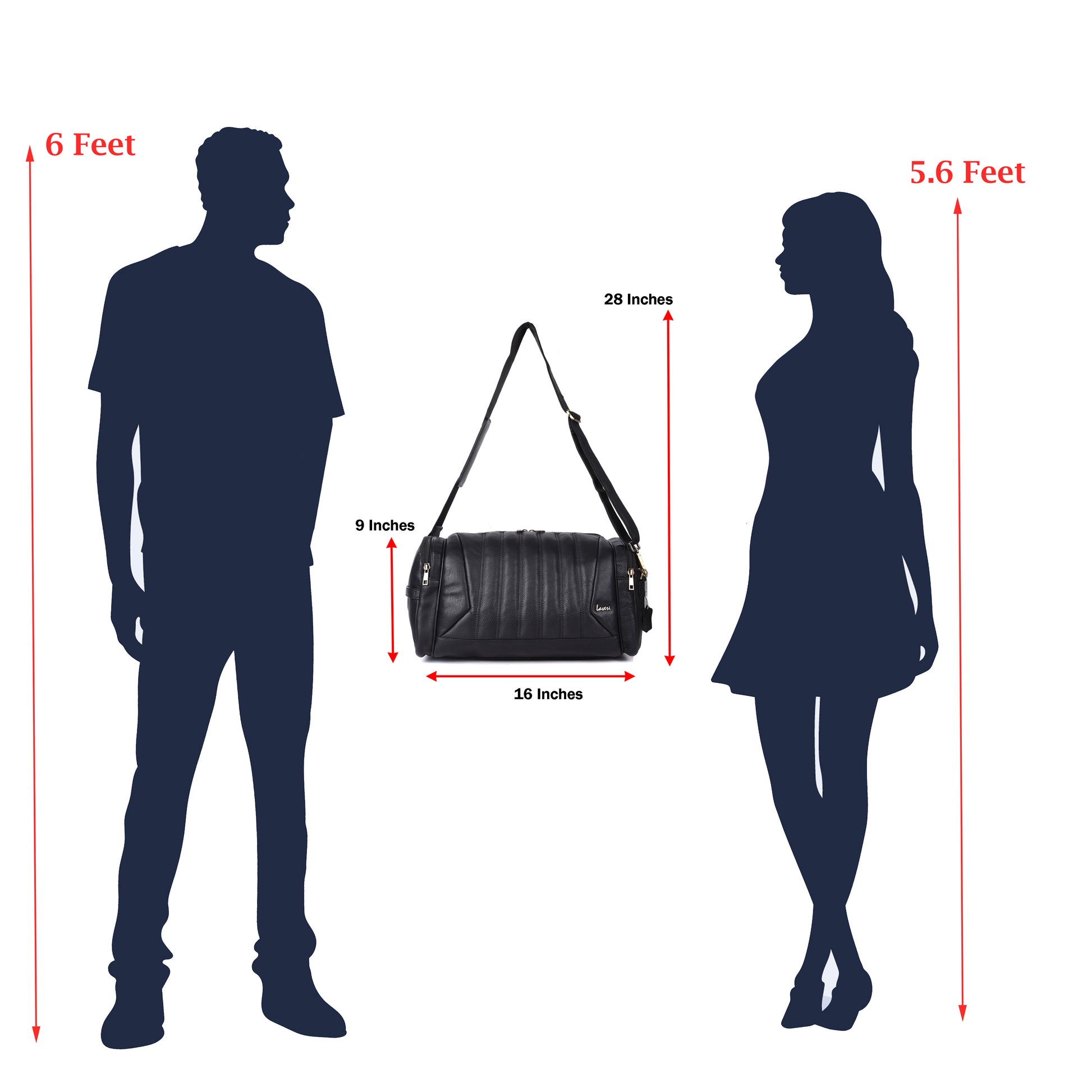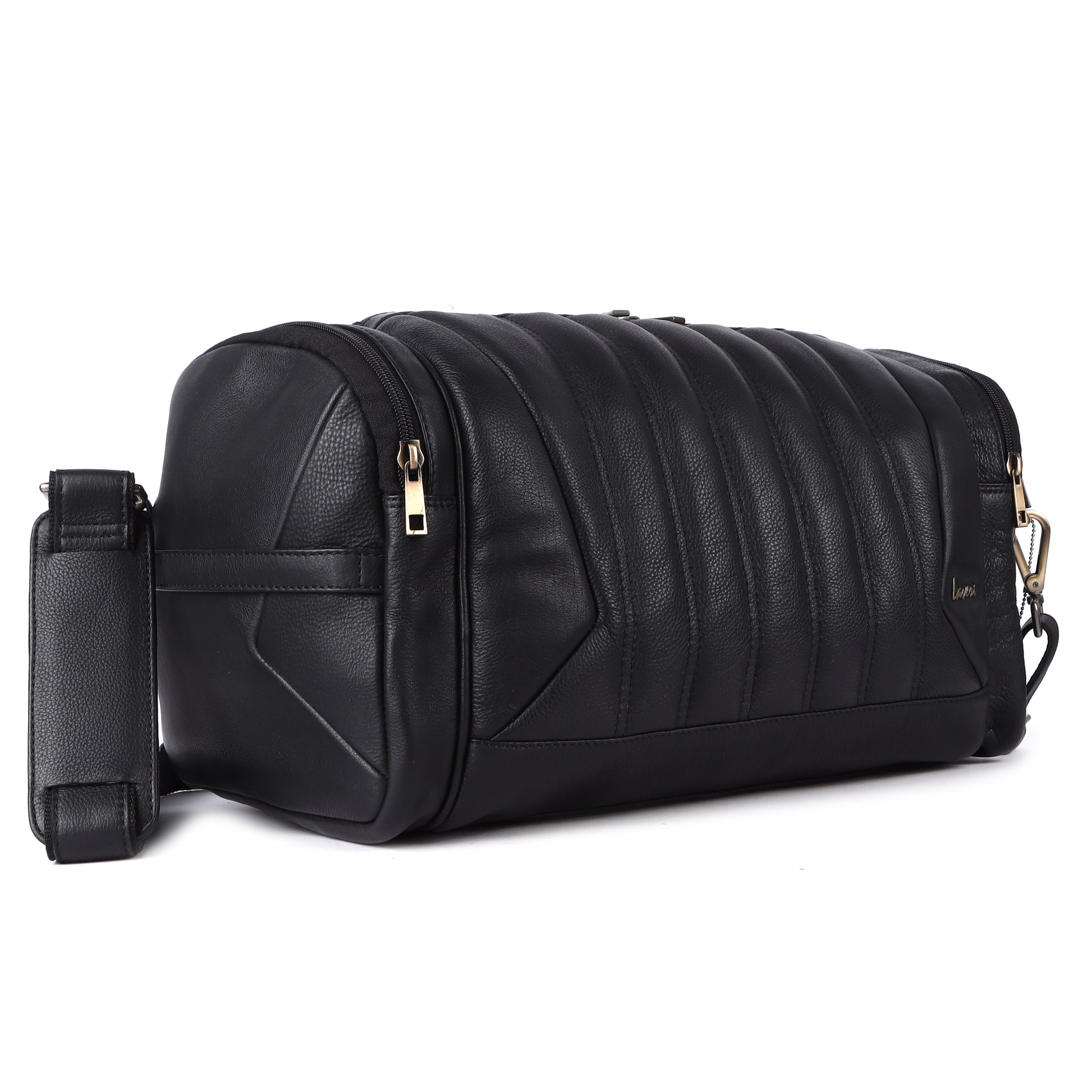 Laveri® Genuine Leather Travel Duffel Bag #2860 Black
