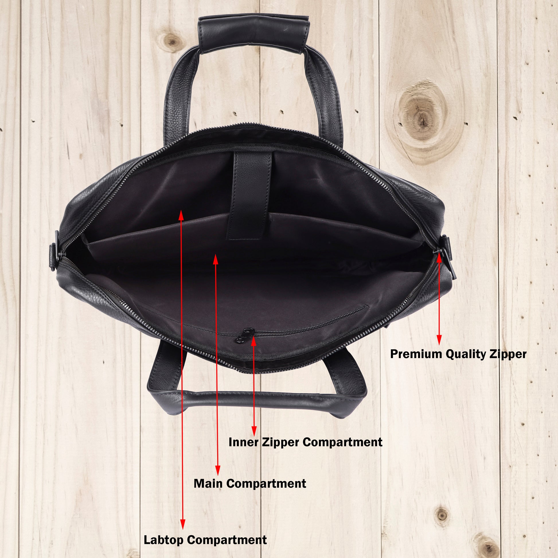 The bag features two front zippered pockets for easy access to your most-used items, while the adjustable shoulder strap allows for comfortable, hands-free carrying. Whether you're commuting to the office or traveling for business, this leather laptop bag ensures your essentials are always within reach, while its polished appearance helps you maintain a professional image. Crafted from premium materials, this bag is designed to last, making it a smart and stylish investment for your daily work needs.