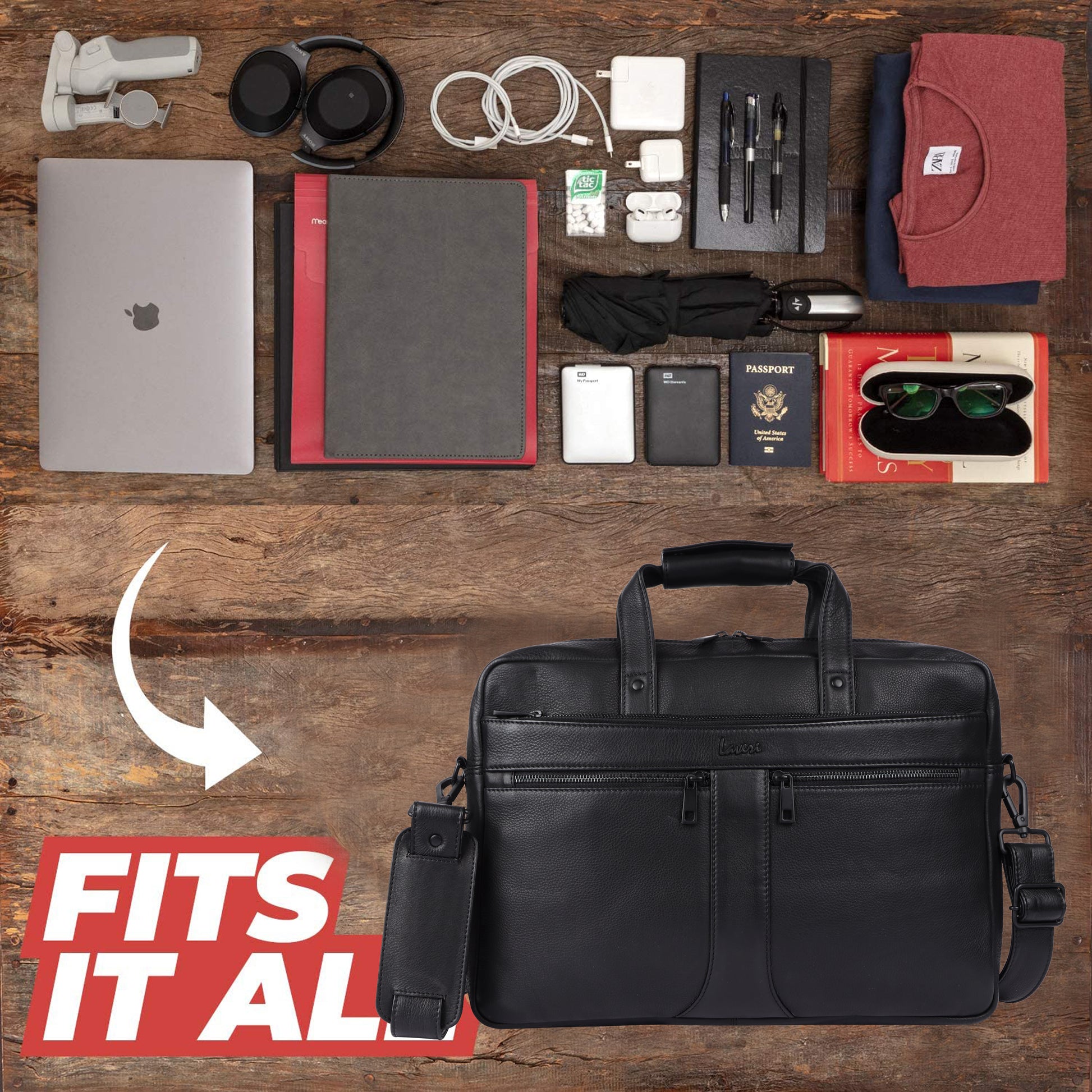 The Laveri Leather Office Laptop Bag combines timeless elegance with modern functionality, making it the perfect accessory for professionals on the move. This black leather bag is designed to fit laptops up to 15.6 inches, with multiple compartments to keep your gadgets, documents, and office essentials organized. Its sleek, minimalist design is enhanced by the sturdy leather construction, offering durability and style in equal measure.