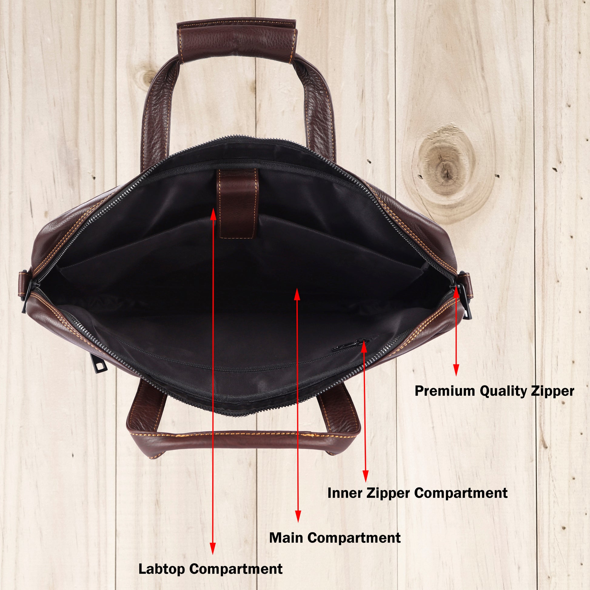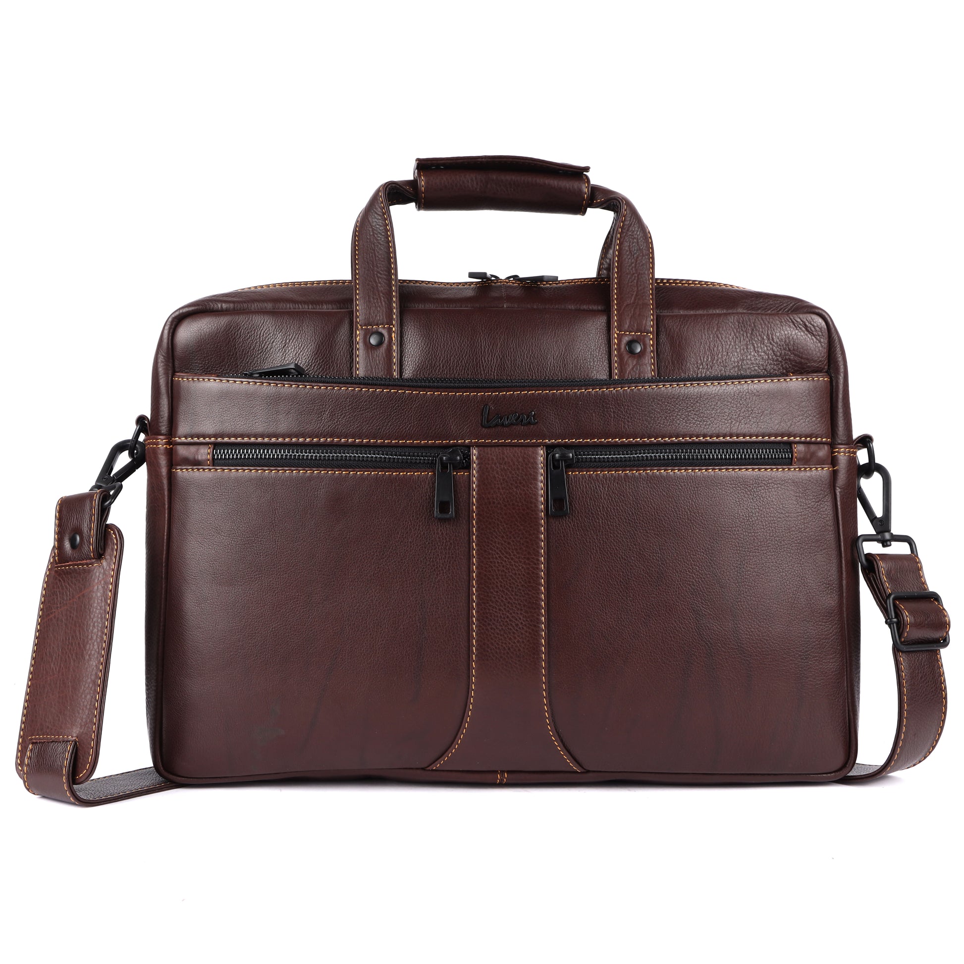 The adjustable and detachable shoulder strap ensures comfortable carrying, while the sturdy handles offer versatility. Whether you're heading to a meeting or commuting to work, this stylish leather bag keeps your belongings organized and secure. Built to last with its superior craftsmanship, the Laveri laptop bag is the ideal companion for anyone seeking both functionality and fashion in their office essentials.