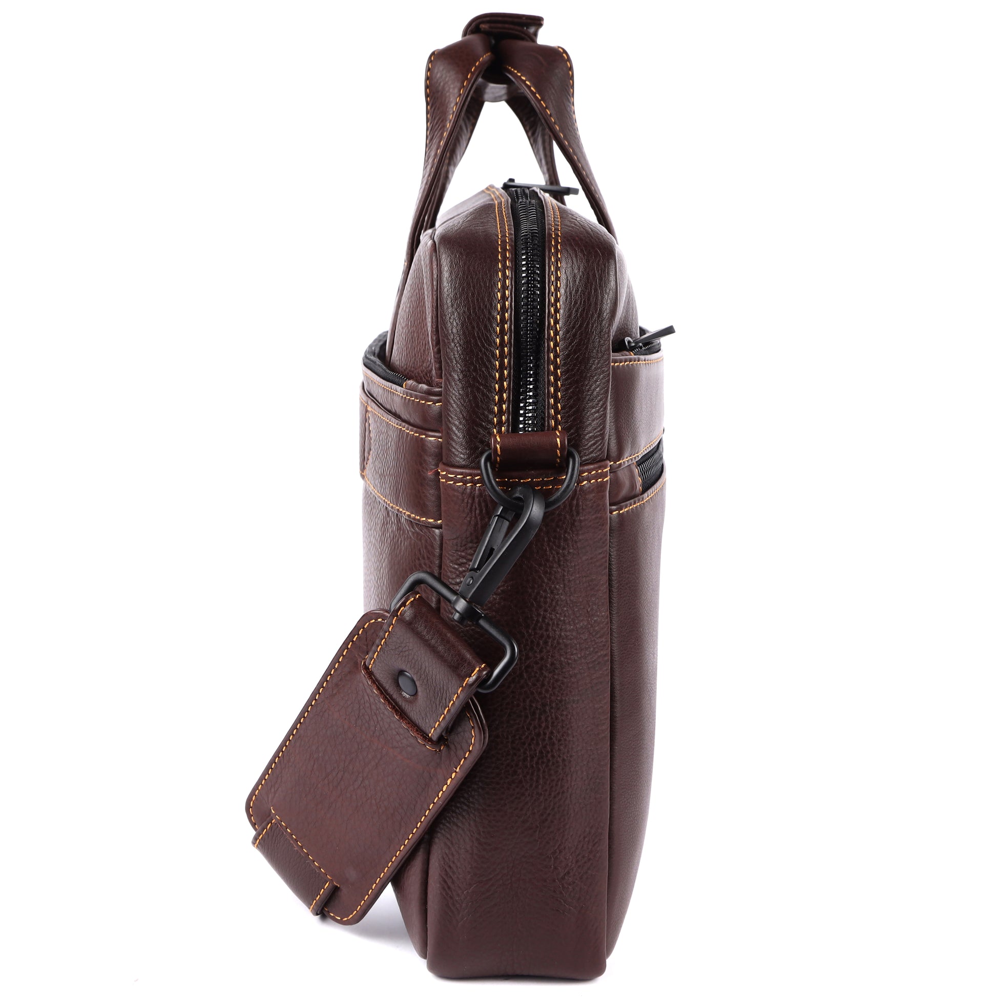 Your professional style with the Laveri Genuine Leather Office Laptop Bag. Crafted from high-quality genuine leather, this laptop bag exudes sophistication and durability, making it perfect for the modern professional. Designed to securely fit laptops up to 15.6 inches, it features multiple compartments for your documents, gadgets, and essentials. The bag also includes two front zippered pockets for quick access to frequently used items.