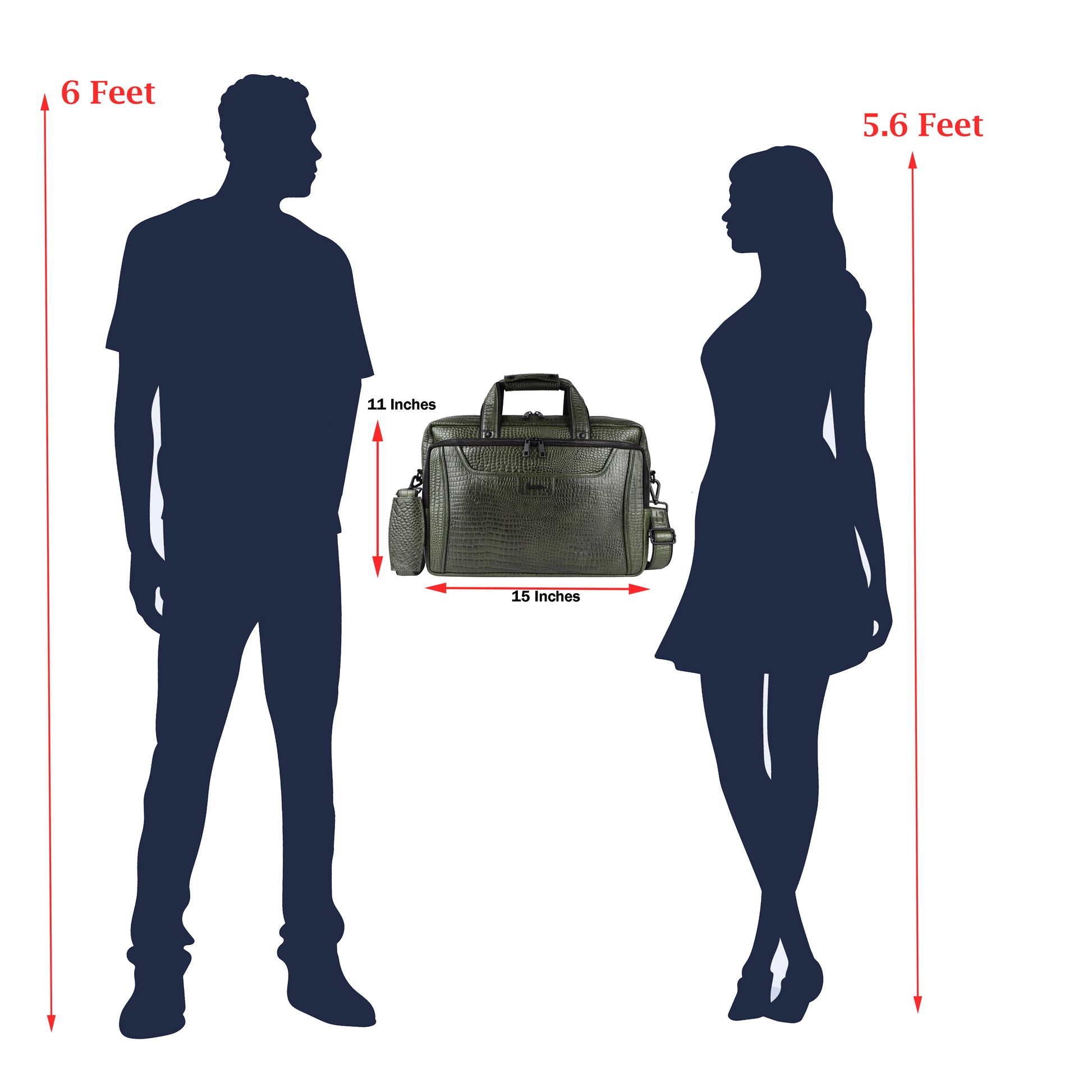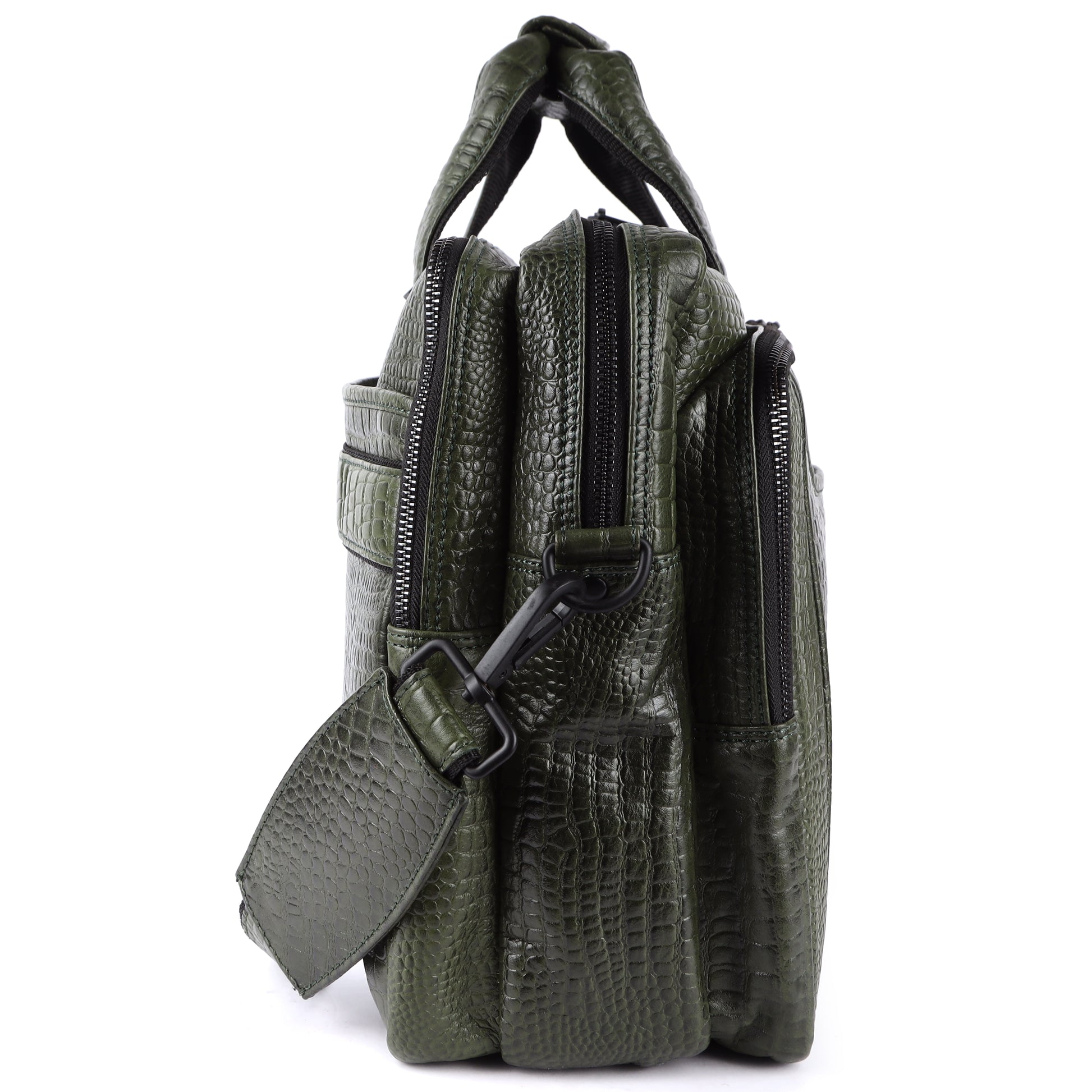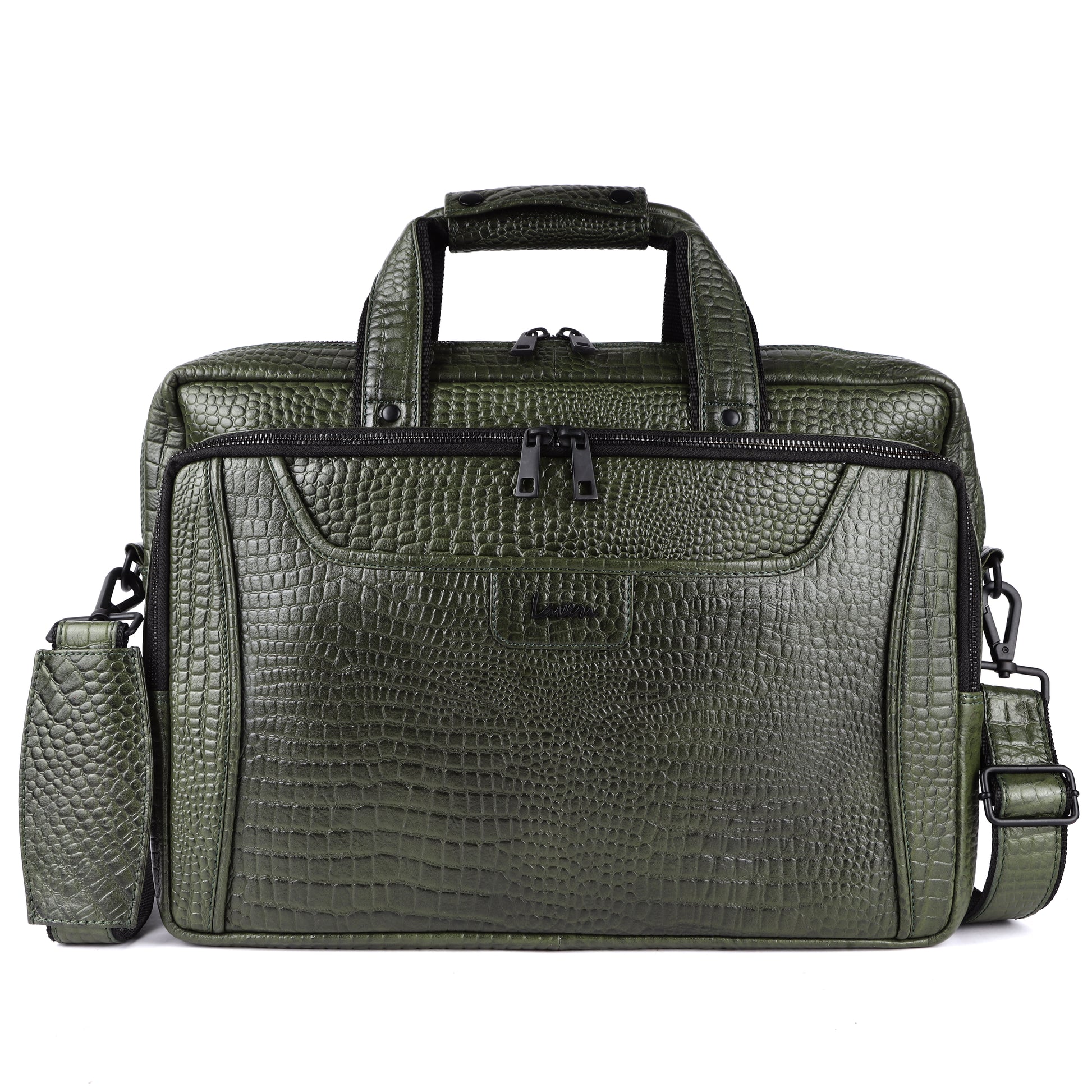 Laveri Genuine Leather Office Laptop Bag (GREEN-CROCO)