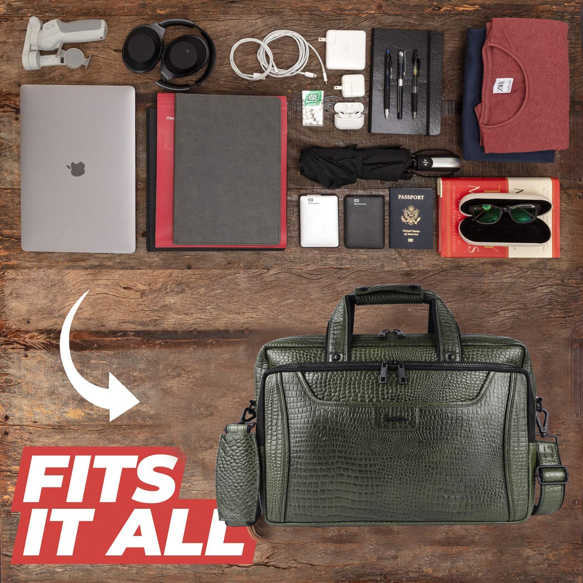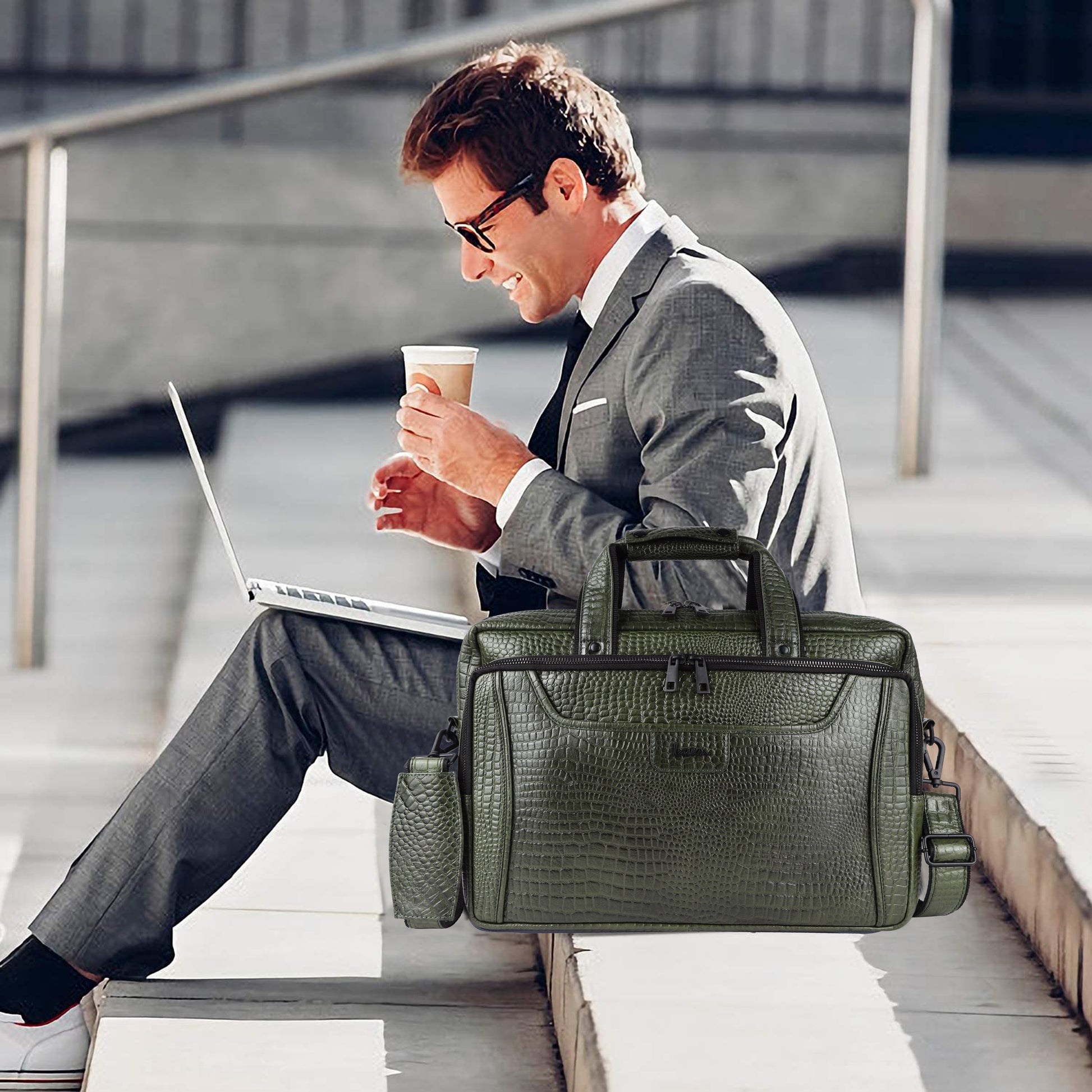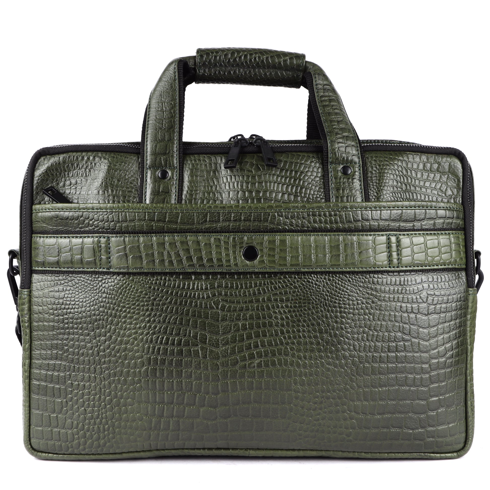 Laveri Genuine Leather Office Laptop Bag (GREEN-CROCO)
