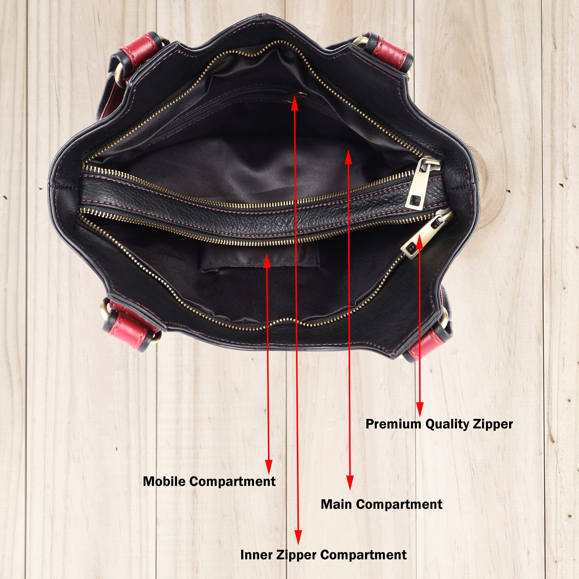 Laveri Genuine Leather Women Hand Bag (BLK-RED)