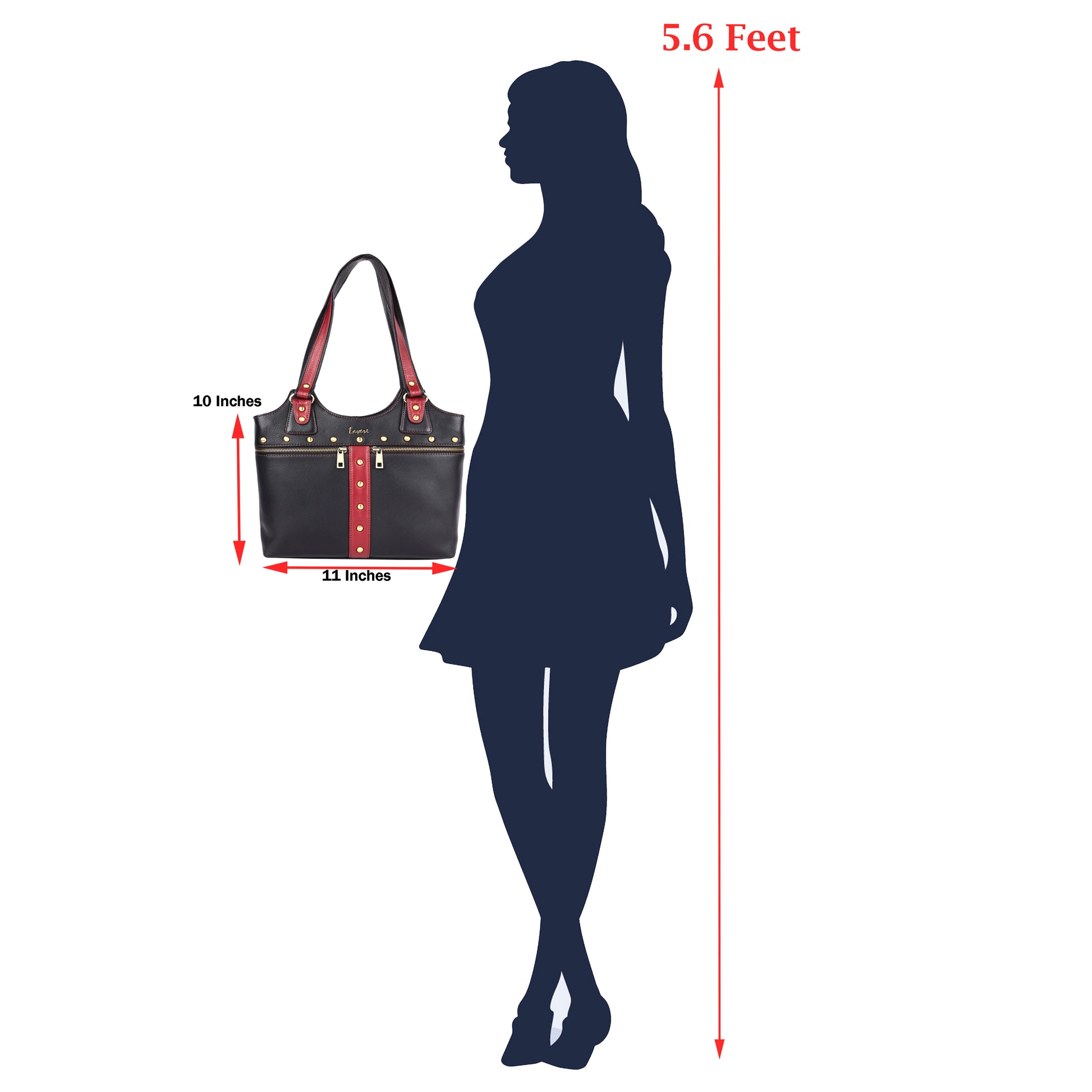 The spacious interior offers plenty of room for all your daily essentials, while the dual shoulder straps provide comfort and ease of carrying. The zippered front pocket adds extra convenience, ensuring your smaller items are always within reach. Elevate your fashion game with the Laveri Women Handbag (BLK-RED), a must-have accessory that blends chic design with everyday practicality.