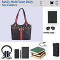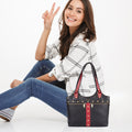 The Laveri Women Handbag (BLK-RED) is the perfect combination of style and functionality, designed for women who love bold fashion. Crafted from premium materials, this handbag features a striking black and red color scheme with gold accents and studded detailing that adds a touch of edge to your outfit. Whether you're heading to work or a casual outing, this stylish tote is versatile enough for any occasion.