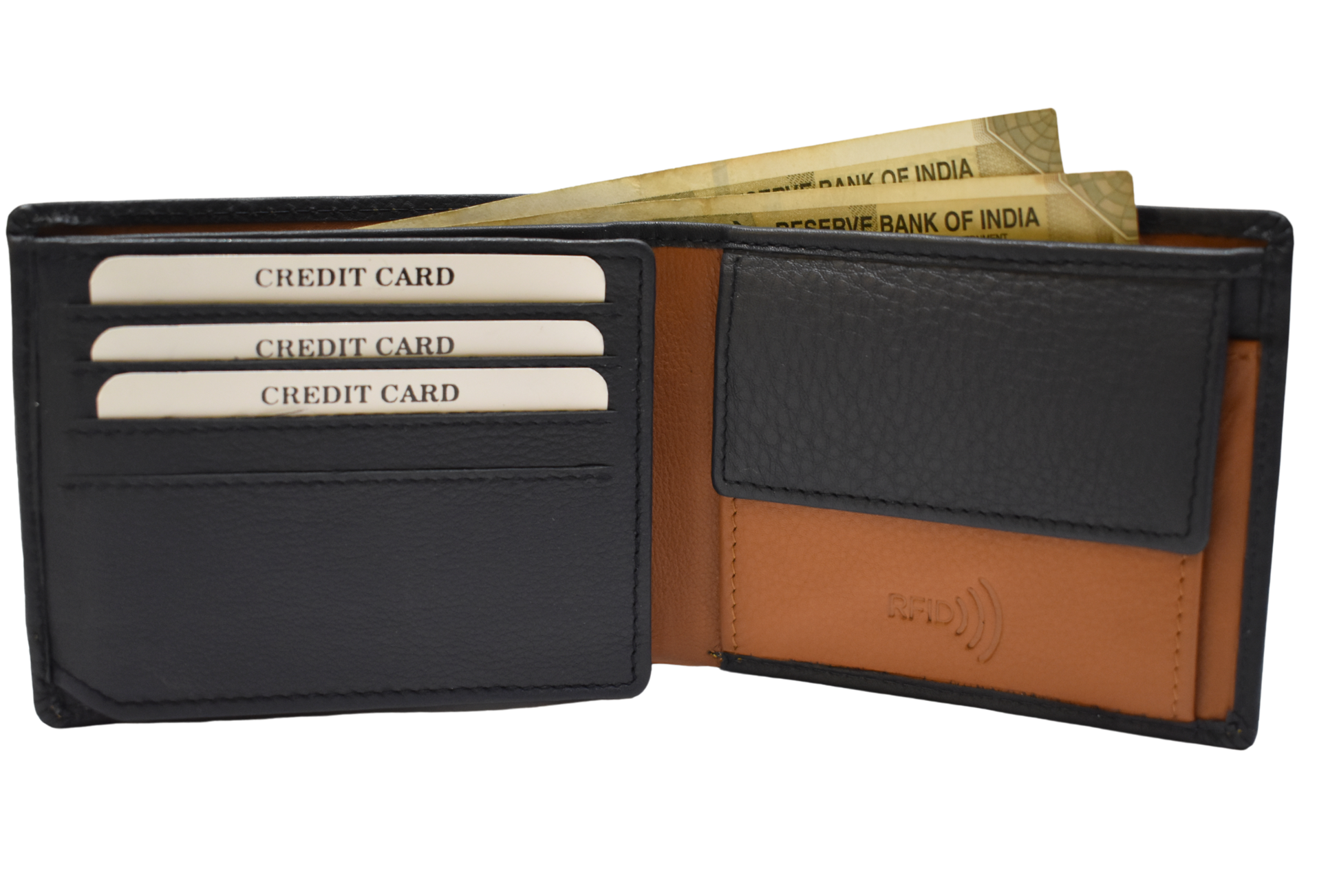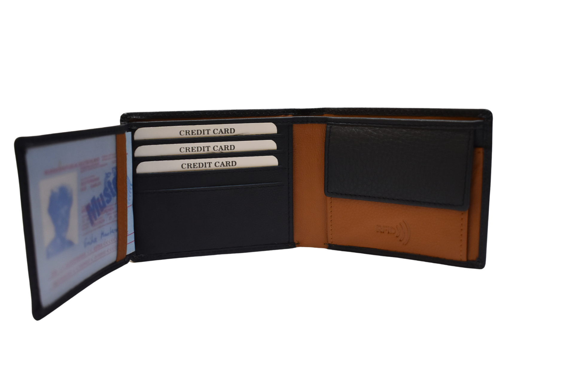 Laveri Leather Designer Multicolor Mens Wallet Black/Tan #4022