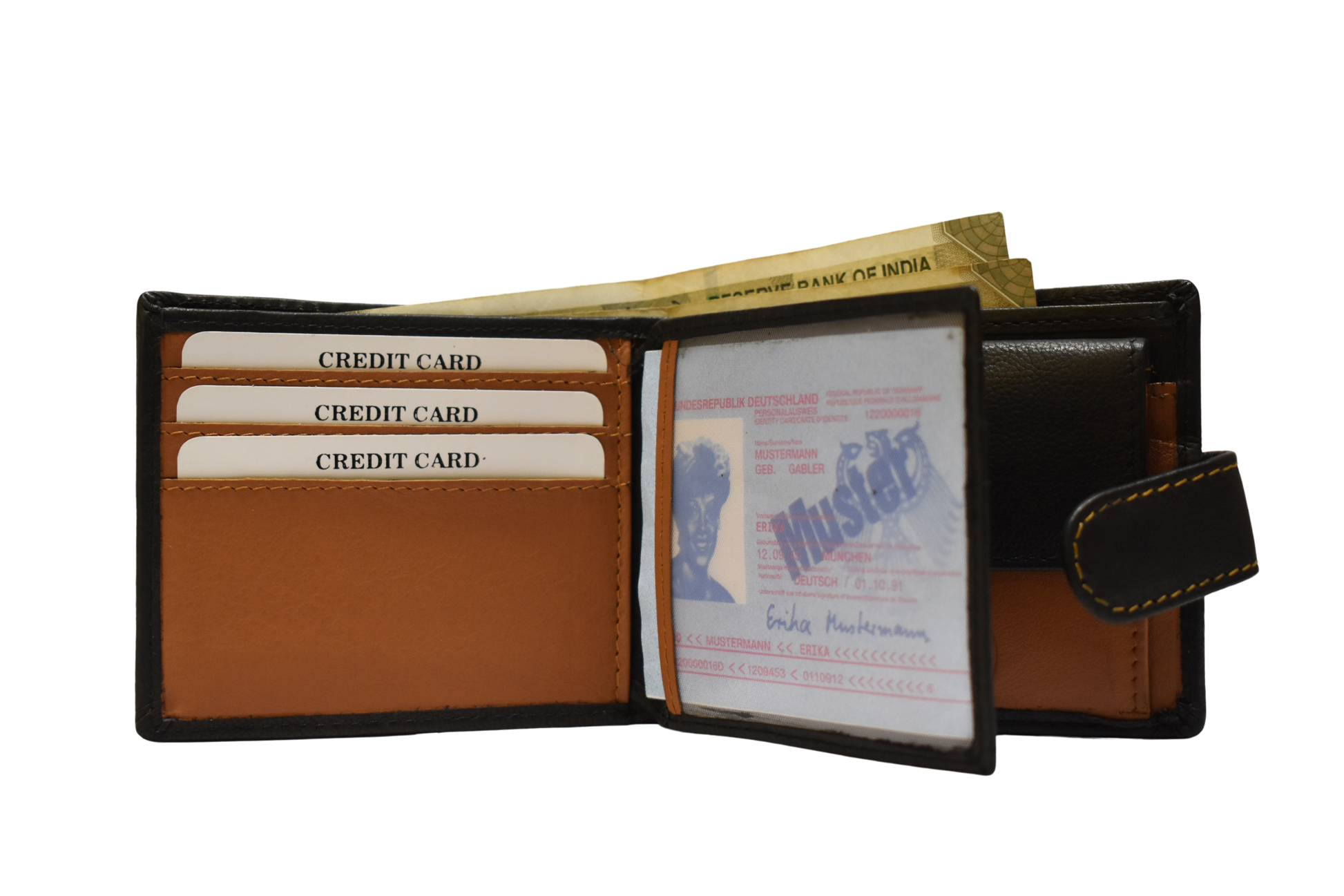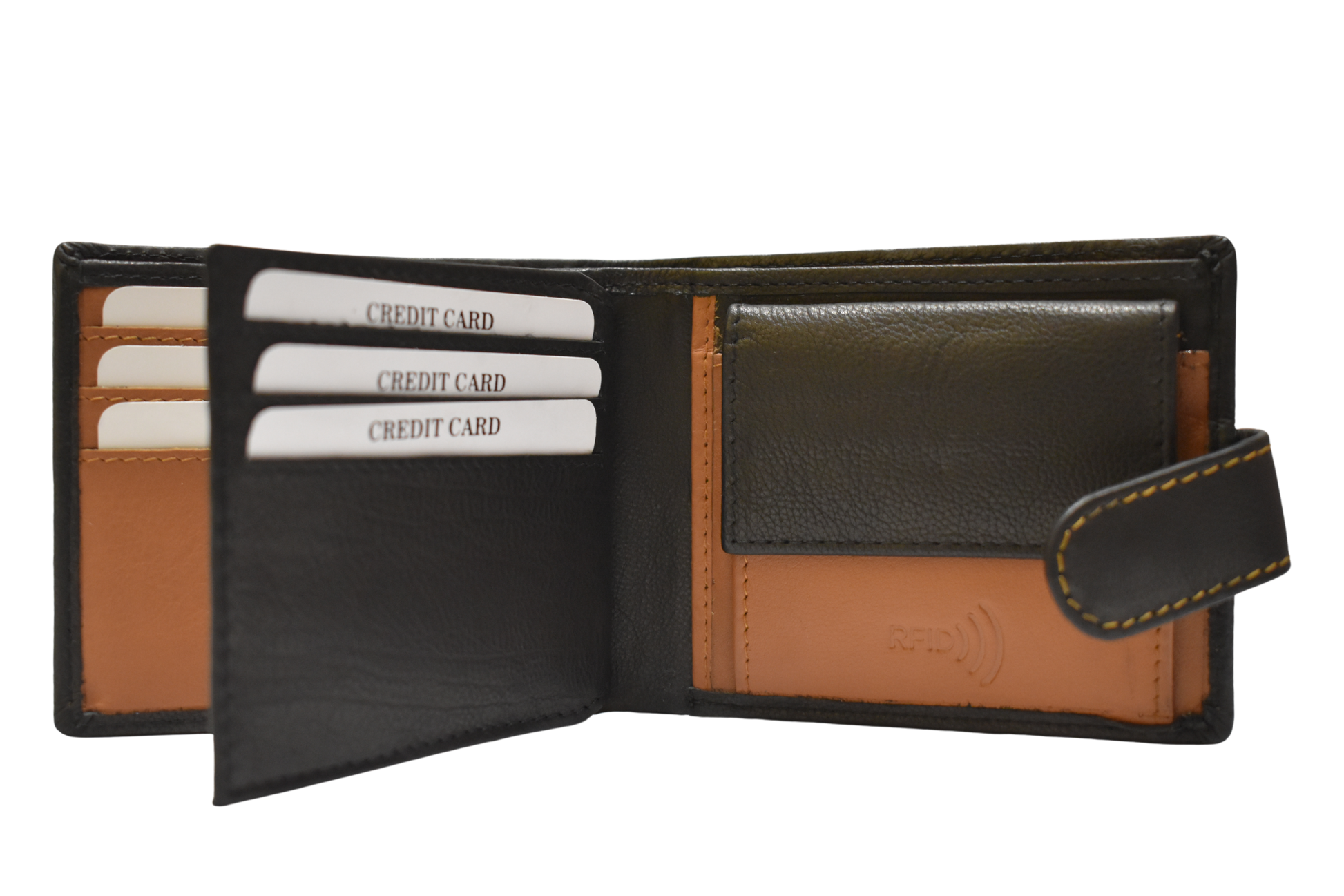 Laveri Leather Designer Multicolor Mens Wallet Black/Tan #753CL
