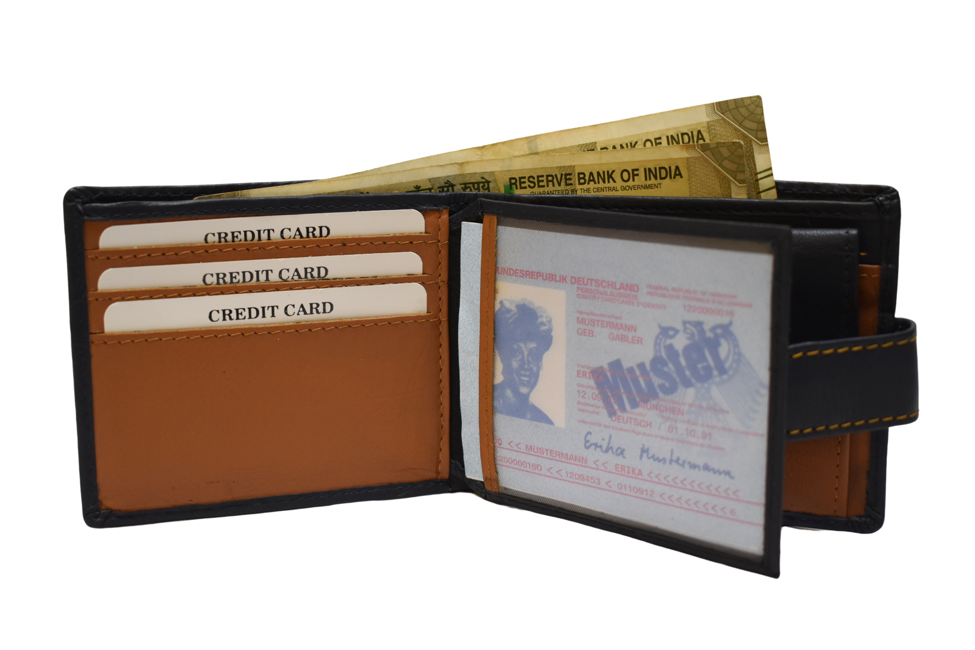 Laveri Leather Designer Multicolor Mens Wallet Blue/Tan #753CL